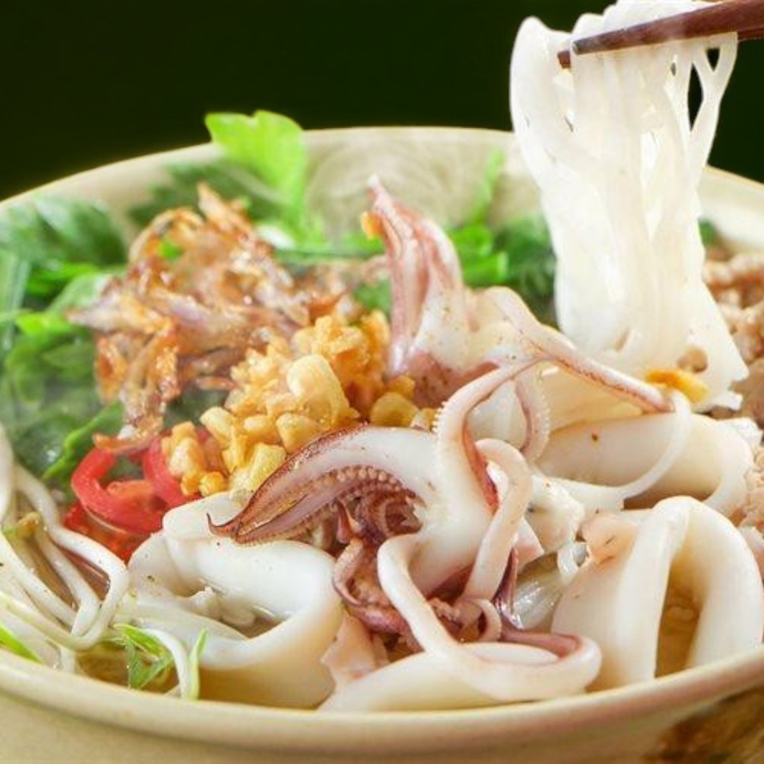 Hủ tiếu Hải sản – Tôm, mực, thịt, trứng cút: 50.000đ